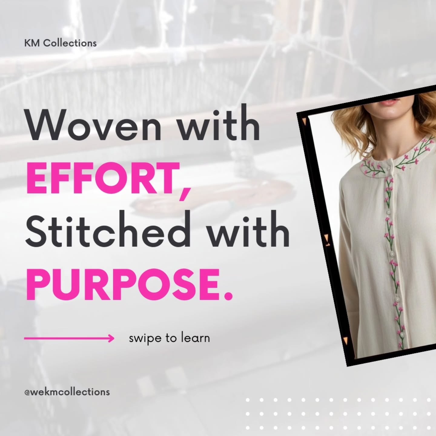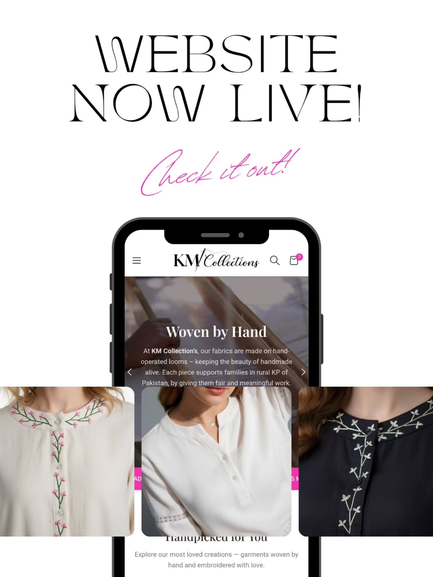 At KM Collection’s, our fabrics are made on hand-operated looms – keeping the beauty of handmade alive. Each piece supports families in rural KPK of Pakistan, by giving them fair and meaningful work.